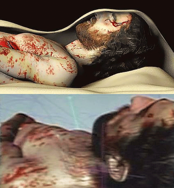 Toutes les marques laissées sur le linceul font écho aux sévices endurés par Jésus tels qu’ils ont été décrits dans les évangiles. Tout y est. Je vous invite à prendre connaissance du tableau comparatif qui est publié sur ce site. >>> Lire l'article.